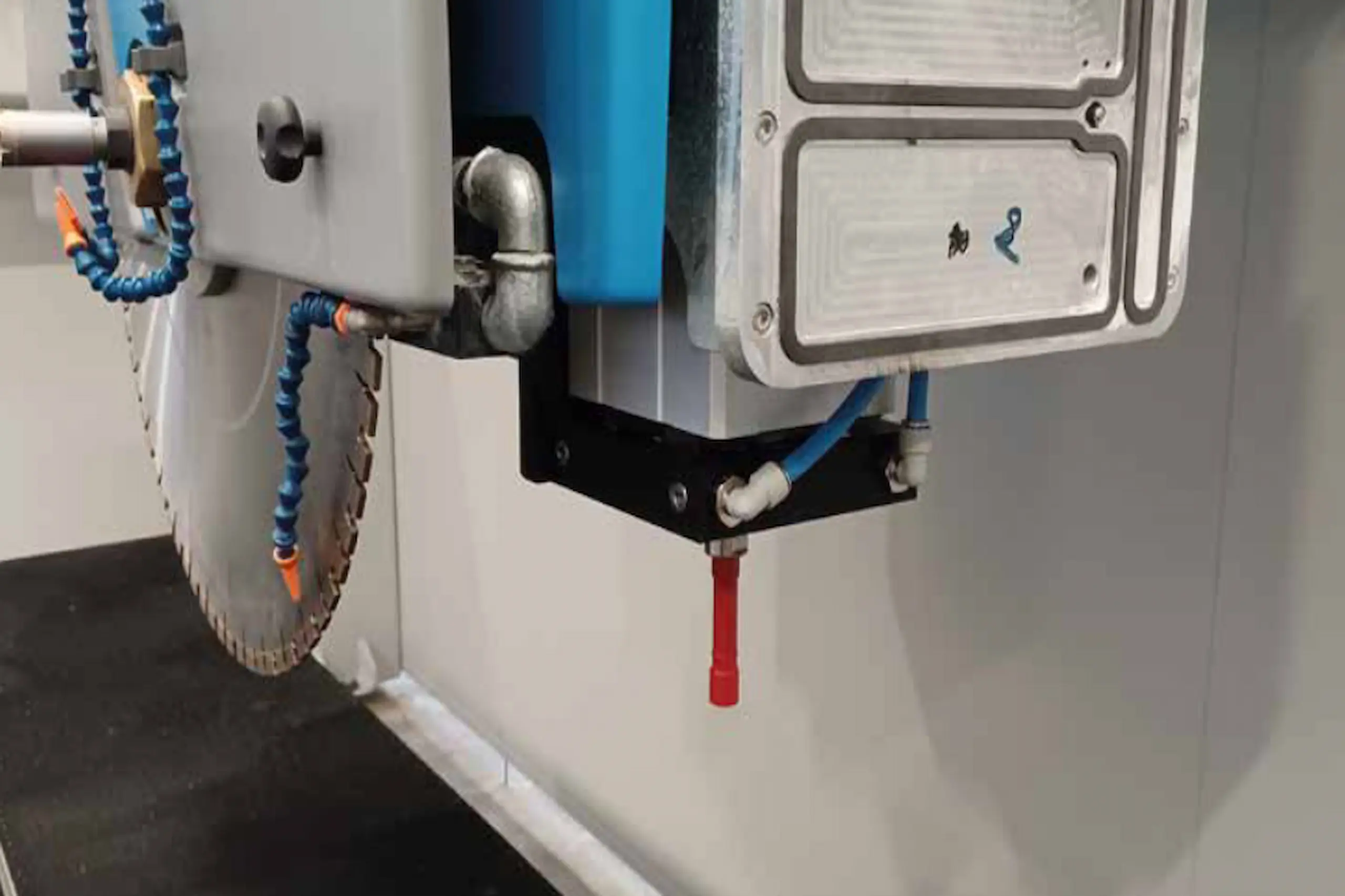 Additional 3.7 kW 14,000 rpm side spindle with manual tool change. It allows an additional tool to perform milling, drilling, lettering, engraving and bas-reliefs without having to remove the tool from the main motor. It can be used for high-speed machining that cannot be handled with the blade motor alone.