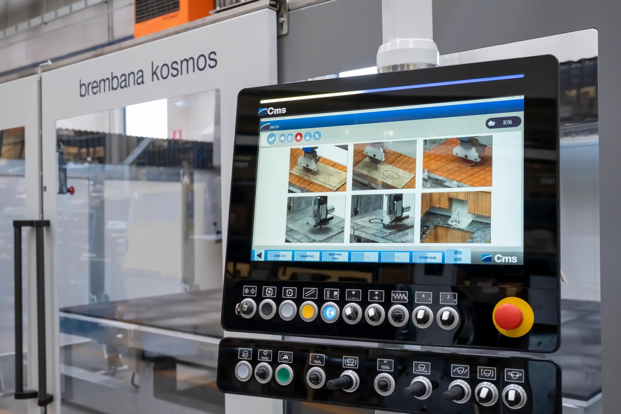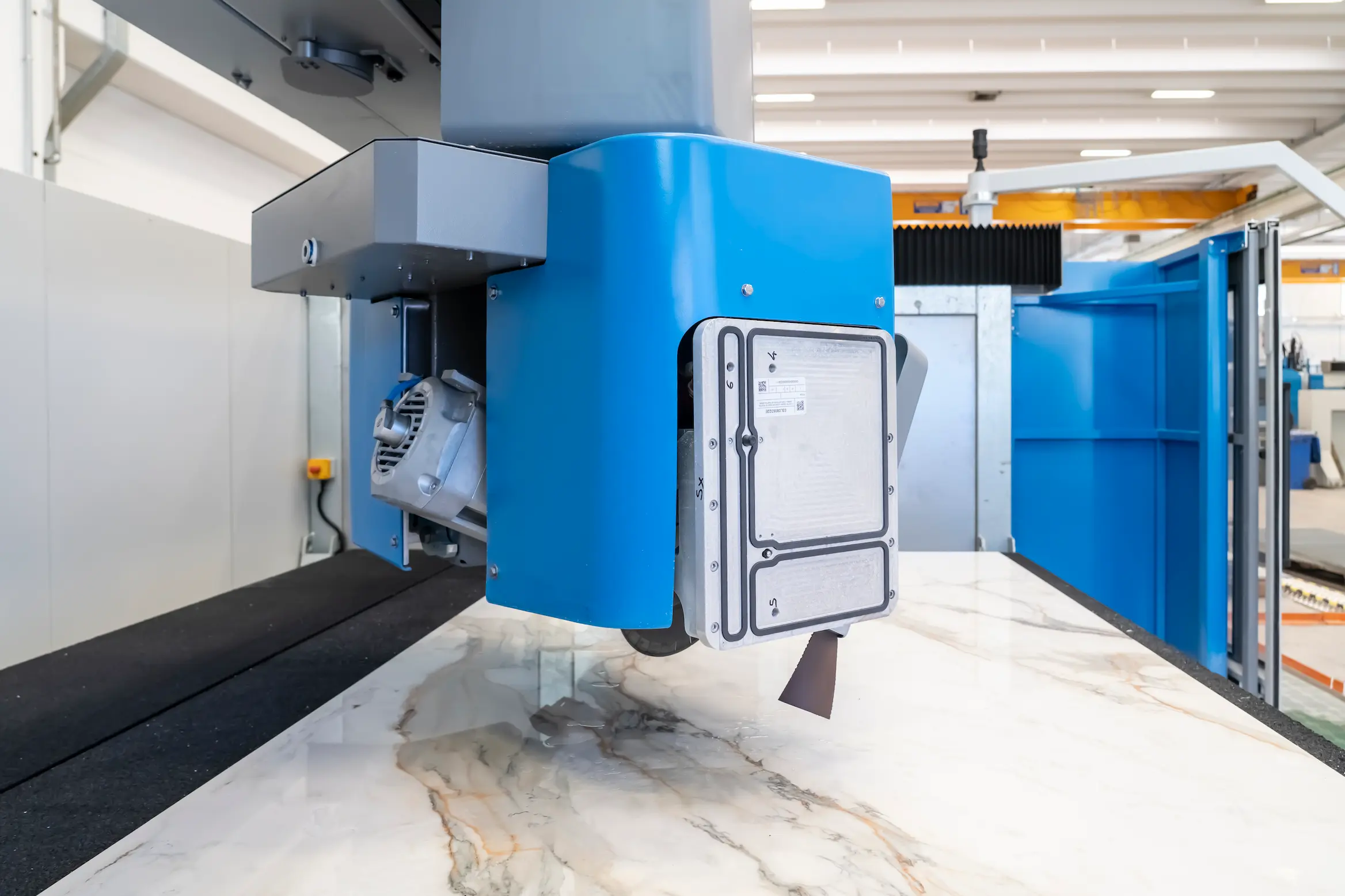 The weight of the machine, up to 5.1 tons, ensure perfect rigidity for the production of kitchen countertops, vanity tops, wall panels for interiors and exteriors, flooring, street furniture, doorsteps, staircases, and thresholds.
